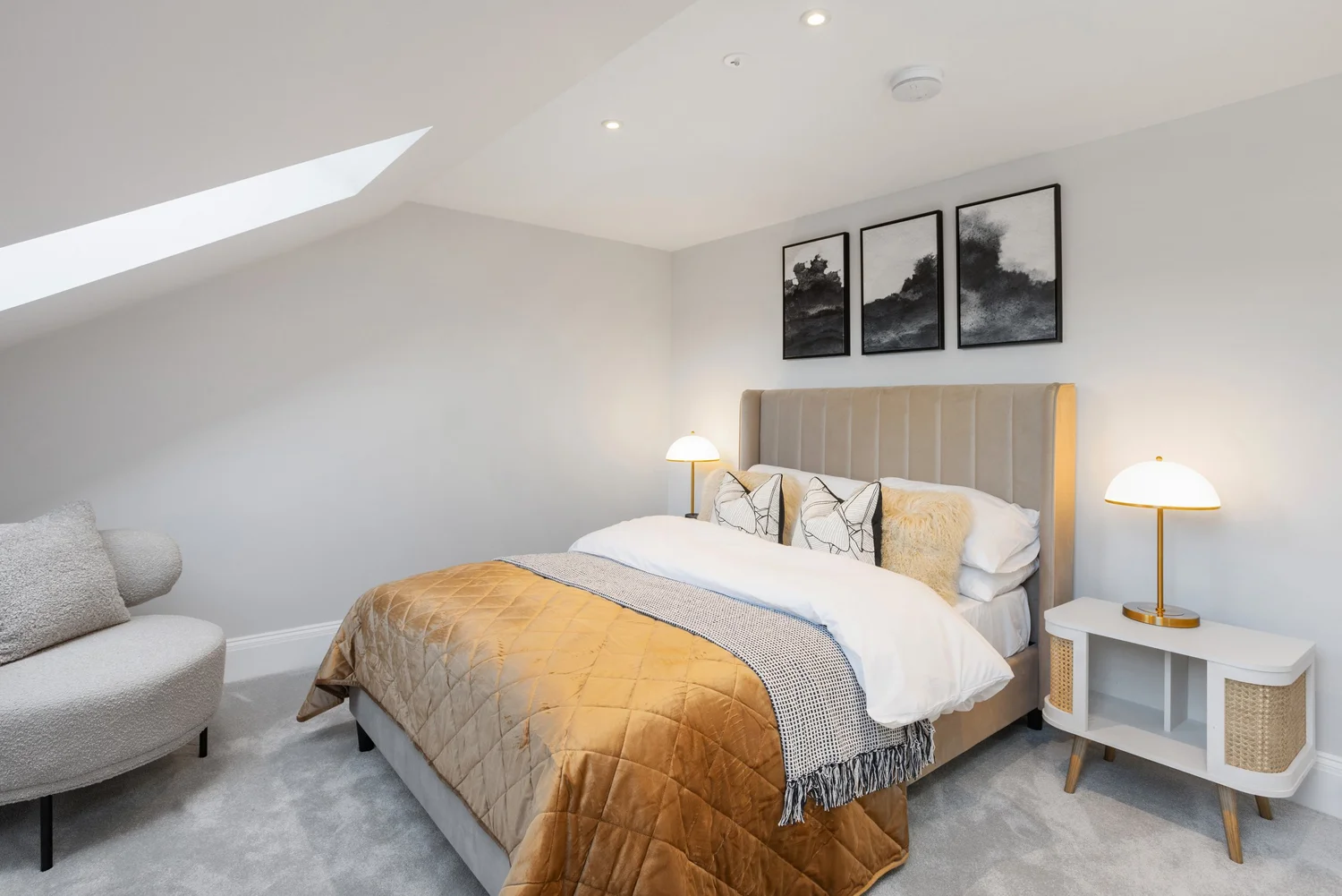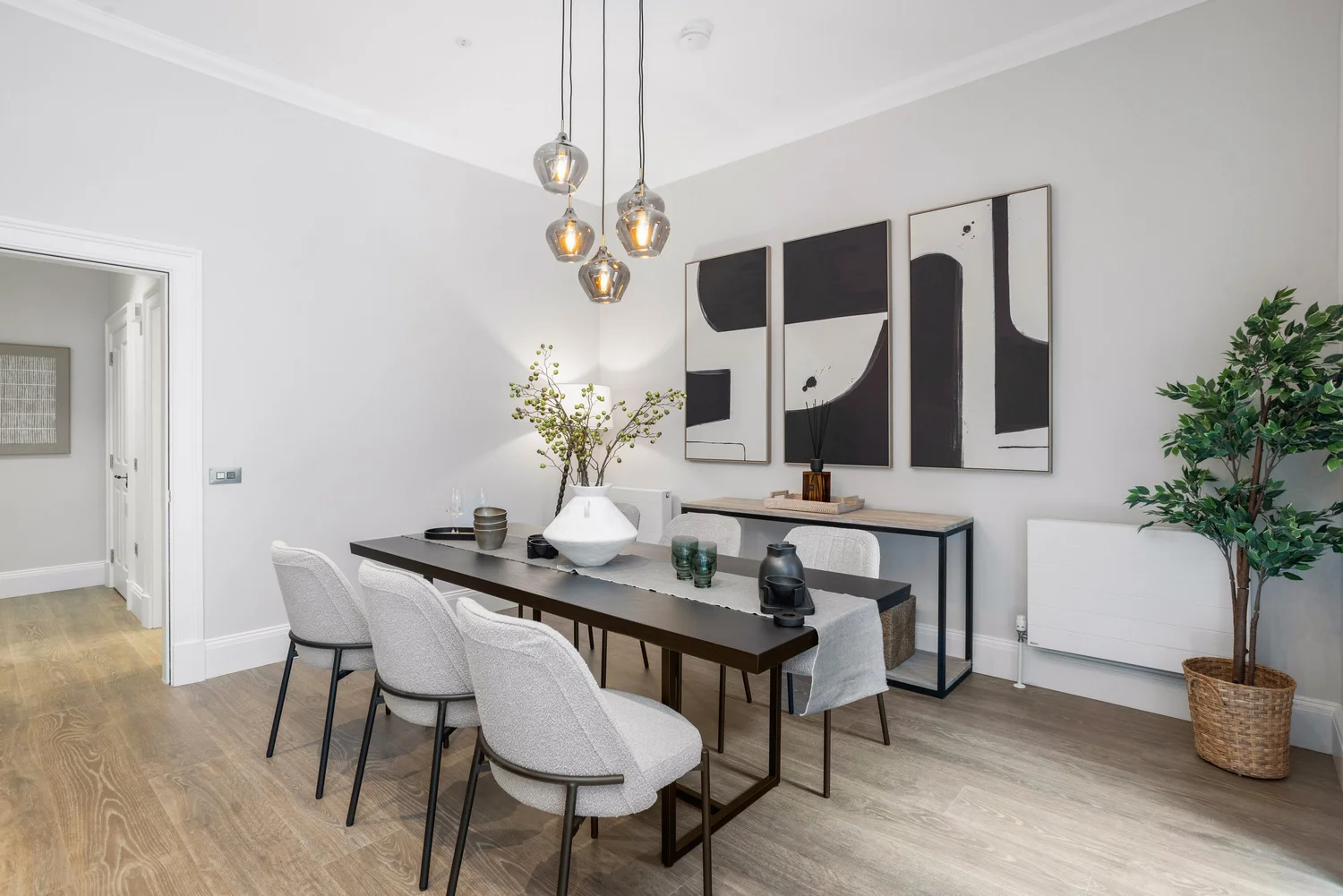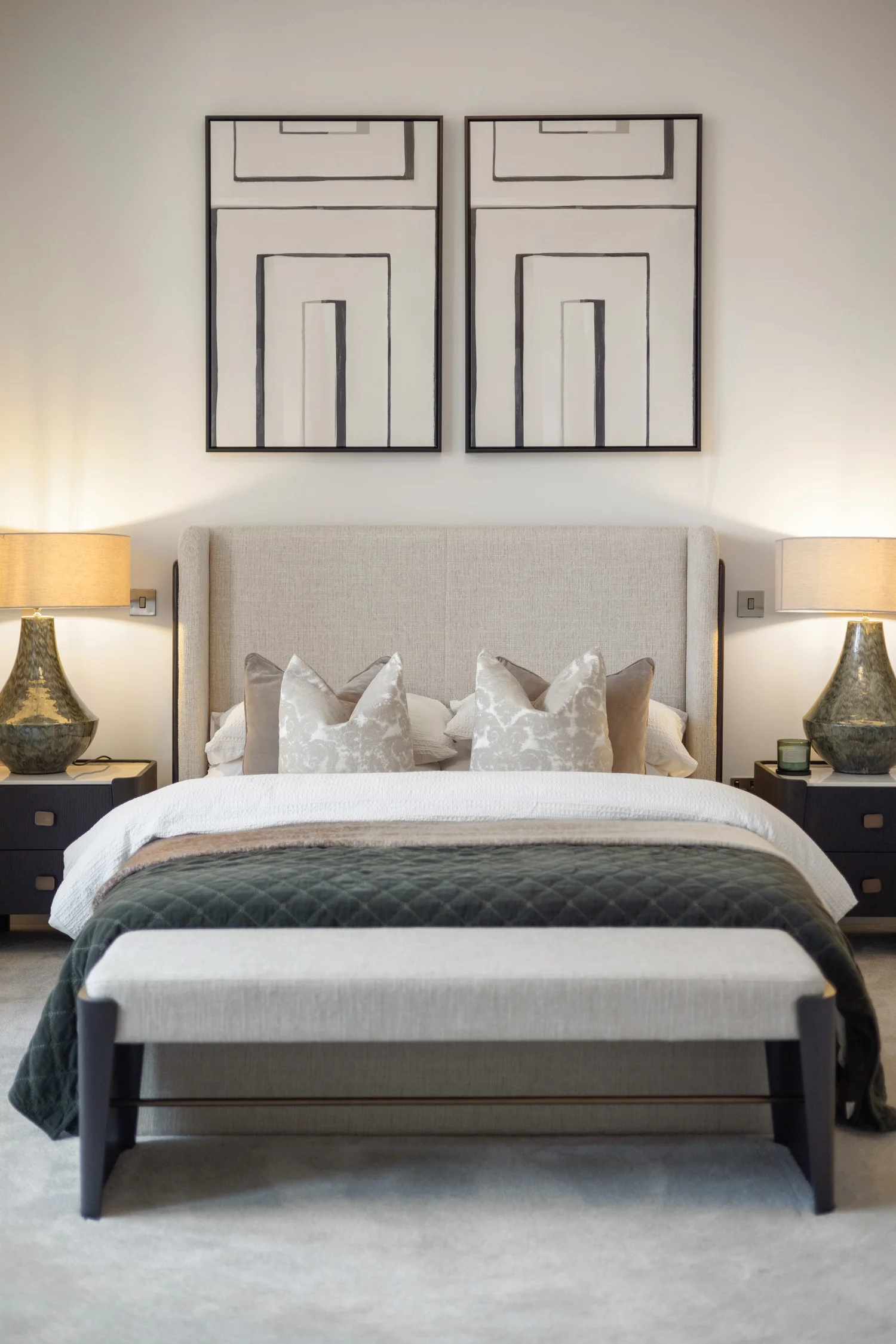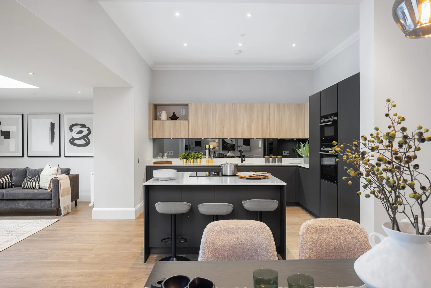 The design brief was inspired by the timeless Victorian architecture and location of this development. With a design target aimed at professional couples/families we wanted to portray a high-end specification, combined with contemporary styling. The front lounge was designed as an elegant space for relaxation, whilst the garden room and dining area, designed for entertaining and lush dinner parties. The development looks out onto the meadows, this inspired us to work with local artists to create large pieces of bespoke artwork, reflecting the beautiful location and utilising the vast wall space.